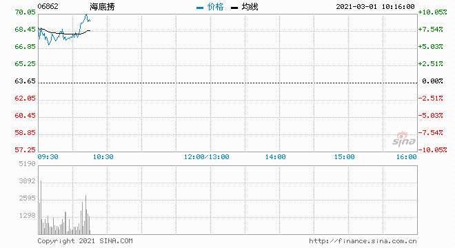 恒指新成員集體高開(kāi) 海底撈高開(kāi)8%阿里健康高開(kāi)逾7%