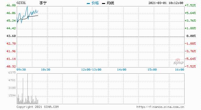 根據(jù)聯(lián)交所最新權(quán)益披露資料顯示,2021年2月22日,李寧(02331)獲JPMorgan Chase & Co.以每股均價48.6186港元增持好倉約156.7萬股,涉資約7618.8萬港元。截至9時37分,漲5.28%,報價45.9港元,成交額6288.01萬。