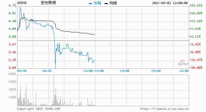 宏光照明盤中跳水跌逾18% 振幅超60%此前兩日暴漲2.5倍