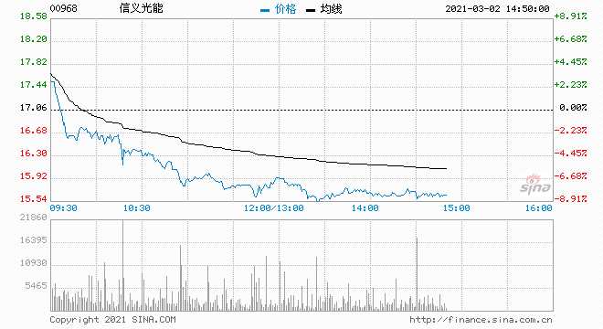3月2日消息,光伏太陽能(000591,股吧)板塊集體走低,信義光能跌近8%,信義能源跌近7%,福萊特(601865,股吧)玻璃跌5.86%,洛陽玻璃股份跌4.12%,彩虹新能源跌4.04%。