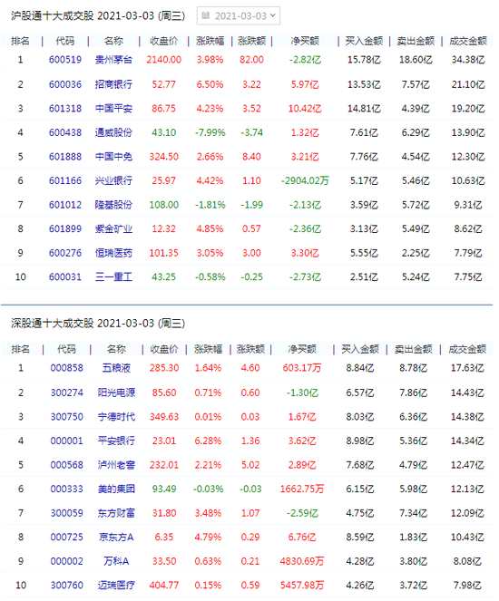 3月13日消息,北向資金凈流入90.1億元,今日凈買入中國平安10.42億元、京東方A6.76億元,凈賣出貴州茅臺(tái)(600519,股吧)2.82億元、三一重工(600031,股吧)2.73億元。