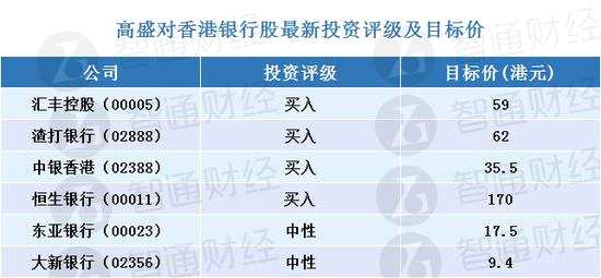 高盛:中銀香港重申買(mǎi)入評(píng)級(jí) 更新香港銀行股評(píng)級(jí)