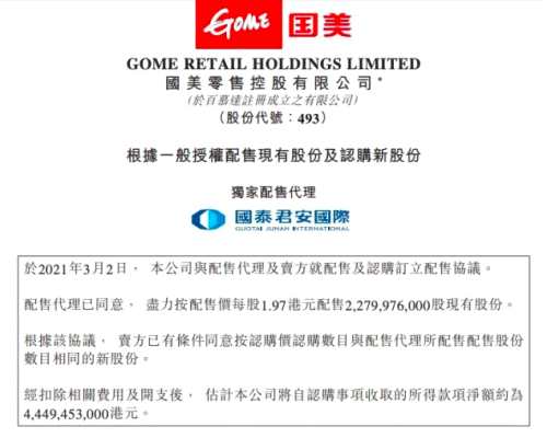 募資44.49億港元 國美籌備糧草