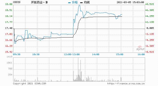 開拓藥業(yè)-B午后漲超8% 現(xiàn)報18.4港元