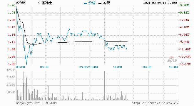 中國稀土一度大跌18% 現(xiàn)跌逾11%