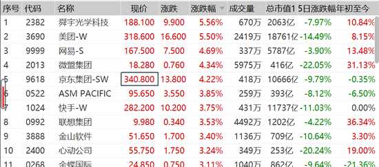 恒生科技指數(shù)漲幅收窄,開盤漲近6%,目前漲2%。舜宇、美團(tuán)漲幅收窄至5%,快手漲幅收窄至不足4%,早盤漲超10%。阿里漲2%,騰訊漲1%。