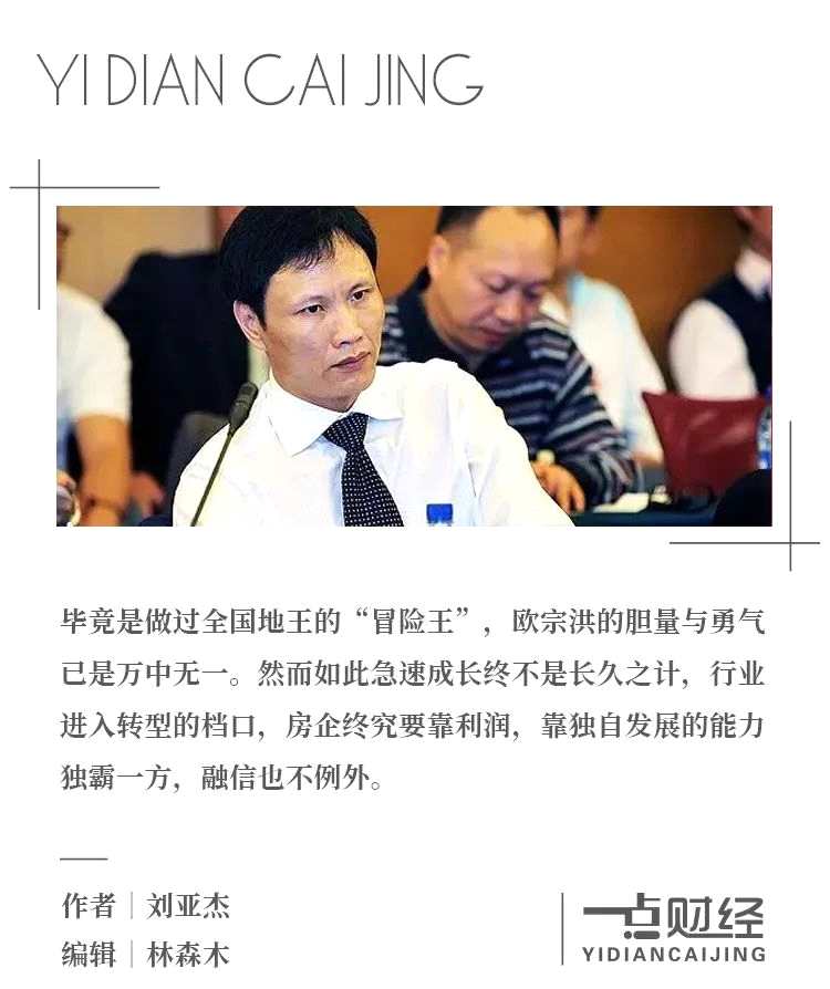 畢竟是做過(guò)全國(guó)地王的“冒險(xiǎn)王”,歐宗洪的膽量與勇氣已是萬(wàn)中無(wú)一。借著“高杠桿+高周轉(zhuǎn)”模式快速成長(zhǎng),融信曾經(jīng)騎在火牛背上。在那個(gè)“撐死膽大的,餓死膽小的”競(jìng)速時(shí)代,輝煌寫(xiě)在每一個(gè)融信人的臉上。