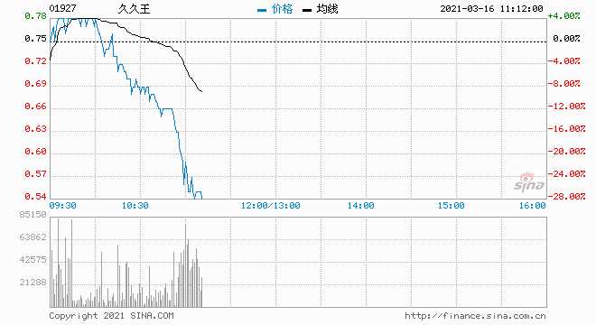 摘要: 3月16日消息,久久王跌12%,公司今日上市,此前一度漲近8%,現(xiàn)報(bào)0.66港元,最新市值5.23億港元。公司發(fā)行1.98億股股份,每股定價(jià)0.75港元,每手5000股。