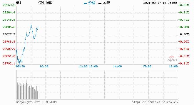 摘要: 3月17日消息,港股恒指翻紅,盤初一度跌0.8%。成分股中,銀河娛樂漲2.81%,海底撈漲2.76%,九龍倉置業(yè)、華潤置地漲超2%,吉利汽車漲近2%。
