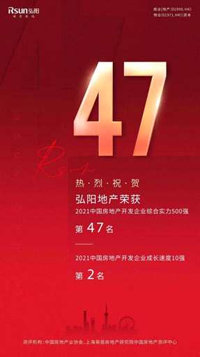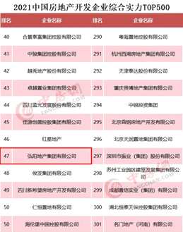 2021中國房企綜合實力TOP500發(fā)布 弘陽獲得3項榮譽
