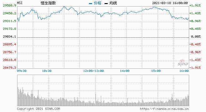 3月18日消息,美股周三收高,道指史上首次站上33000關(guān)口,與標(biāo)普指數(shù)均創(chuàng)歷史新高。美聯(lián)儲維持利率不變,上調(diào)GDP與通脹預(yù)期。鮑威爾暗示2023年底前不會加息。美國國債收益率攀升,10年期美債收益率一度逼近1.69%。港股今日高開高走,午后漲幅縮窄,截至收盤,恒生指數(shù)漲1.28%,報29405.72點(diǎn);國企指數(shù)漲0.98%,紅籌指數(shù)跌0.02%。