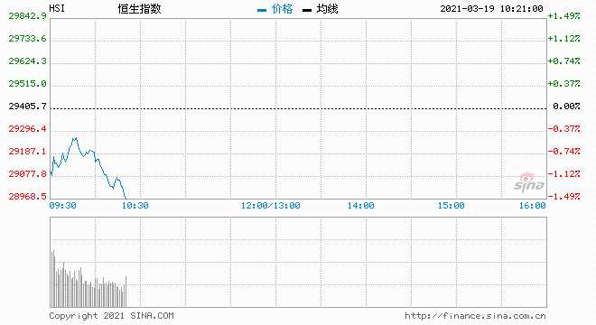 摘要: 3月19日消息,港股恒指低開低走,現(xiàn)跌超1%,成分股中,海底撈跌近5%,科技股、石油股多數(shù)下跌,阿里健康跌近4%,美團、舜宇光學科技跌超3%;中國海洋石油跌近4%,中國石油化工跌近4%。