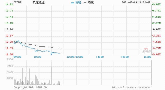 摘要: 玖龍紙業(yè)(02689.HK)近期表現(xiàn)弱勢(shì),現(xiàn)跌幅擴(kuò)大至7.78%,前日股價(jià)亦大跌超7%。報(bào)11.86港元,總市值556.5億港元。