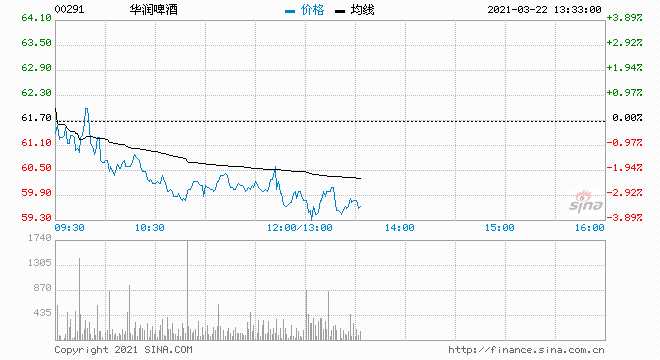 華潤啤酒午后跌幅擴(kuò)大至3.73% 凈利20.9億低于市場預(yù)期