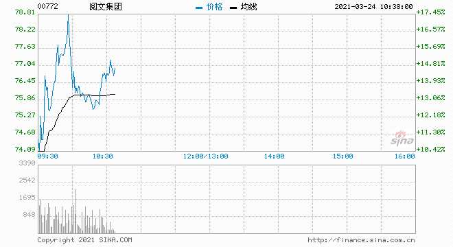 摘要: 閱文集團(0772.HK)今日逆勢大漲,盤中一度漲17.44%報78.8港元,市值達800億港元。