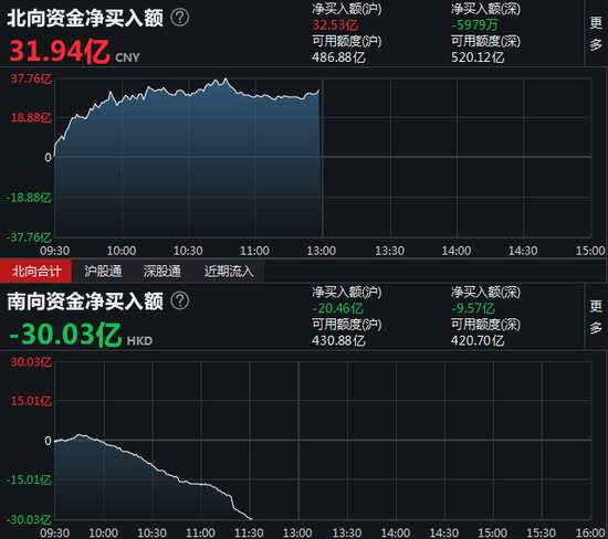 午評(píng):北向資金凈買入31.94億元 滬股通凈買入32.53億