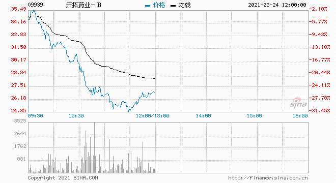 開拓藥業(yè)-B高位回吐重跌逾30% 月內(nèi)最大漲幅超120%