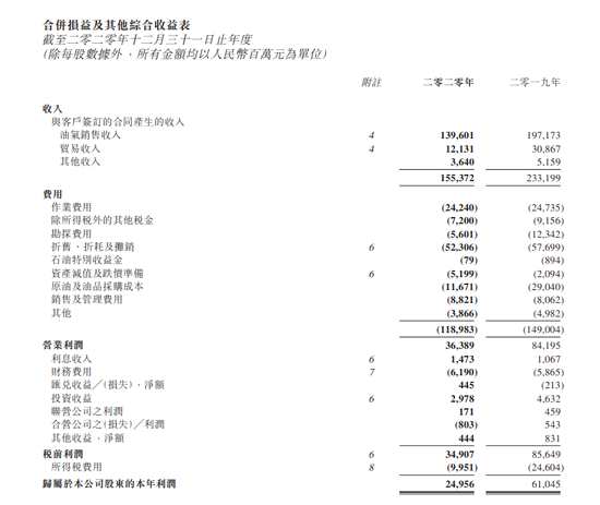 中國海洋石油:2020年收入1553.72億元 凈利潤249.56億元