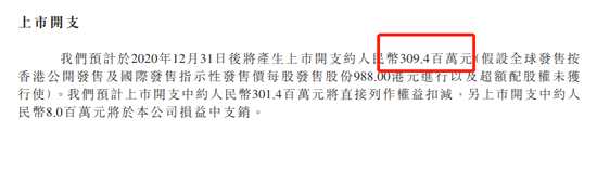 根據(jù)公司全球發(fā)售書,不計(jì)超額配股權(quán),2020年12月31日后,公司預(yù)計(jì)將產(chǎn)生上市開支3.094億元,折合3.67億港元。