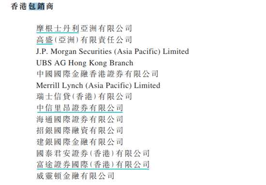 公司的包銷商主要包括大摩、高盛、小摩、中金公司、美林、瑞信、中信里昂、海通國(guó)際、建銀國(guó)際、國(guó)泰君安香港、富途香港、惠靈頓金融。