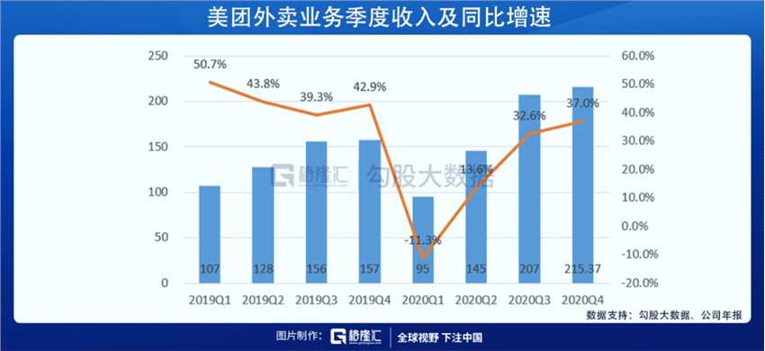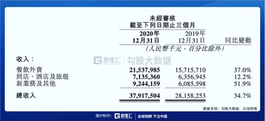 公司Q4收入增長了34.7%達到379.17億,其中占收入超過一半的外賣業(yè)務,同比增長37%,到店、酒店及旅游業(yè)務增長了12.2%,新業(yè)務同比增長了51.9%。