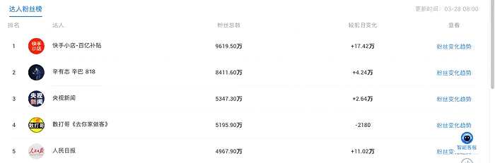 截至3月28日20點(diǎn),快手的達(dá)人粉絲榜上,總粉絲第一名,是快手官方直播間“快手小店”,辛巴位列第二位,但是個體主播的第一位。復(fù)播一夜之后,辛巴的粉絲漲了4.24萬。