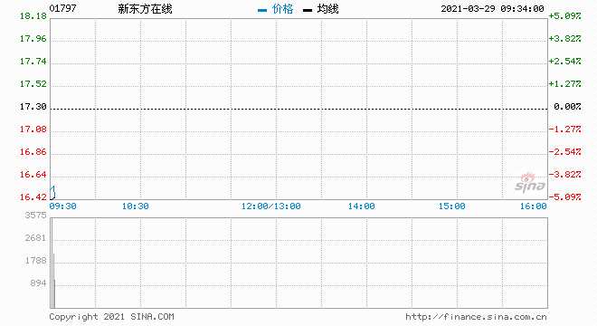 摘要: 市場傳聞致中概在線教育股在上周五暴跌,拖累今早港股市場在線教育股普跌,其中,新東方在線跌超9%,思考樂跌超6%,新東方跌超4%。