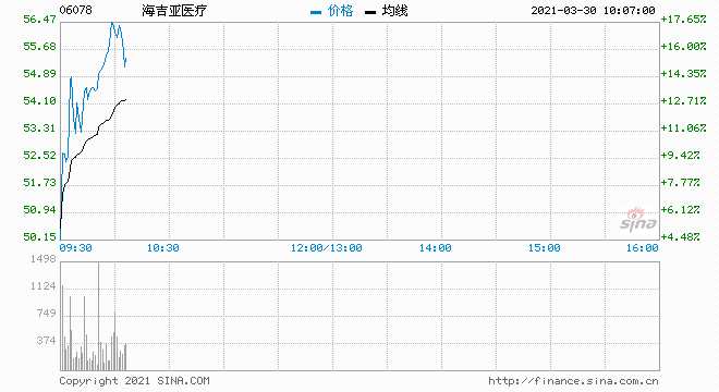海吉亞醫(yī)療(6078.HK)高開(kāi)高走,現(xiàn)報(bào)54.2港元,大漲12.92%,暫成交2538萬(wàn)港元,最新總市值334.9億港元。