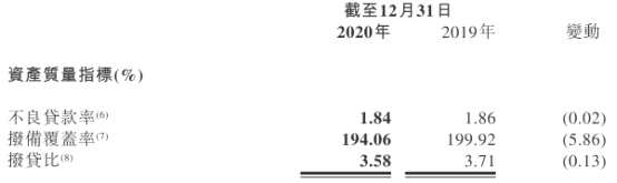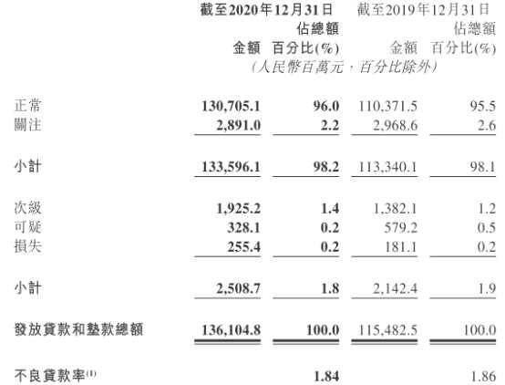 截至2020年末,晉商銀行不良貸款總額25.09億元,比上年末增加3.66億元,增幅17.10%。不良貸款率為1.84%,較上年末下降0.02個百分點。撥備覆蓋率為194.06%,較上年末下降5.86個百分點。