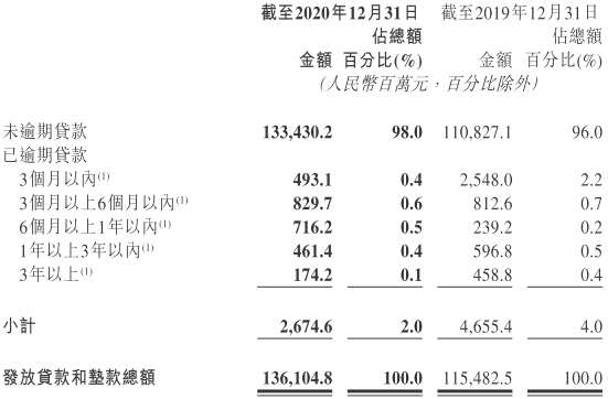 2020年末,晉商銀行逾期貸款26.75億元,上年末時為46.55億元。逾期貸款占該行貸款總額2.0%,上年末時為4.0%。其中,逾期3個月(含)以內(nèi)貸款4.93億元,占貸款總額比例為0.4%。