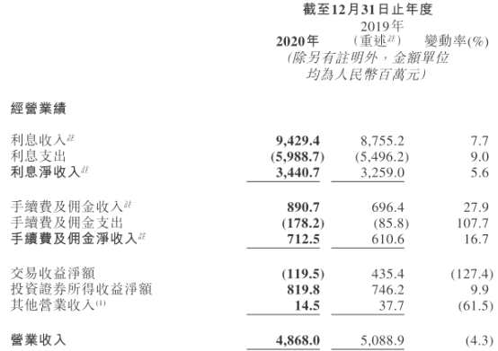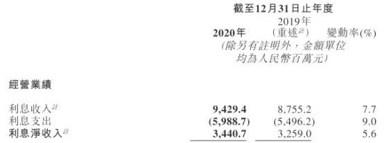 2020年,晉商銀行的利息凈收入為34.41億元,增幅5.6%。利息收入為94.29億元,增幅7.7%。利息支出為59.89億元,增幅9.0%。
