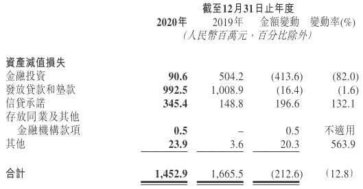 2020年,晉商銀行資產(chǎn)減值損失為14.53億元,比上年末16.66億元減少12.8%,主要是由于金融投資的資產(chǎn)質量趨于穩(wěn)定,計提的減值損失較上年減少。