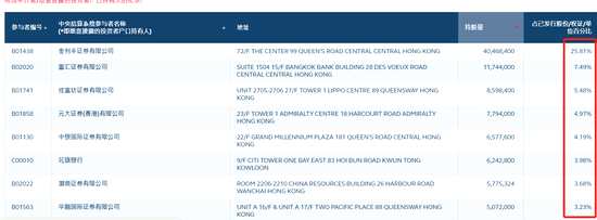 看3月24日和3月30日的持倉數(shù)據(jù),金利豐證券從26.99%減少為25.81%,潮商證券從5.85%減少為3.68%。此外,富匯建筑從8.42%減少為7.49%,結(jié)好證券直接清倉。