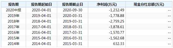冰凍三尺,非一日之寒。昔日牛股淪落到如此落魄局面,與公司日漸式微的業(yè)績密不可分。據(jù)公司披露的財報數(shù)據(jù)顯示,2014年上市當年,公司實現(xiàn)凈利潤421.77萬元,2015年轉(zhuǎn)虧780.76萬元,2016年虧損擴大至3110.28萬元,2017年至2018年虧損額度雖然在減少,但虧損金額仍不小,2019年再次虧損2568.78萬元。