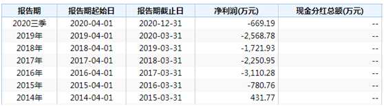 今年2月8日,公司披露截至2020年12月31日的三季報顯示,前三季度公司實現(xiàn)收益4326.70萬元,同比增長37.54%;凈利潤虧損669.19萬元,同比收窄44.80%。
