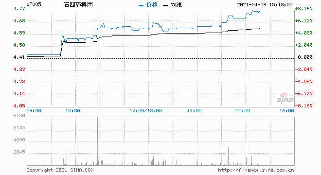 4月8日消息,港股藥品股午后繼續(xù)拉升,石四藥集團(tuán)漲超7%,復(fù)星醫(yī)藥(600196,股吧)、國藥控股、康哲藥業(yè)漲超5%,四環(huán)醫(yī)藥漲近4%,三生制藥漲近3%。