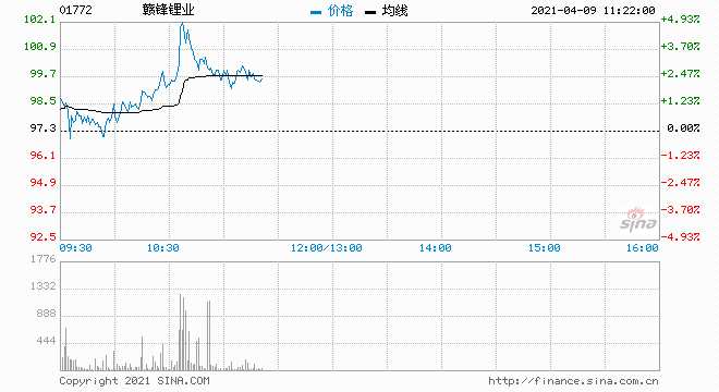 據(jù)數(shù)據(jù),截止4月8日國(guó)內(nèi)動(dòng)力型優(yōu)等品磷酸鐵鋰均價(jià)在48000.00元/噸,相比1月初,磷酸鐵鋰價(jià)格上漲了26.32%,第一個(gè)季度整體價(jià)格上漲了29.73%,漲幅達(dá)到了11000元/噸。贛鋒鋰業(yè)(002460,股吧)(01772)盤(pán)中急升逾5%,截至發(fā)稿,漲3.6%,報(bào)100.8港元,成交額1.44億港元。