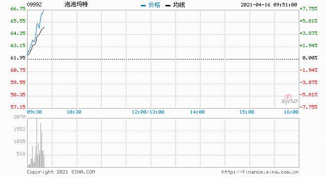 摘要: 4月16日消息,泡泡瑪特拉升漲超7%,現(xiàn)報66.1港元,成交額達8000萬港元。中國銀行:給予泡泡瑪特買進的初始評級,目標價67.40港元。