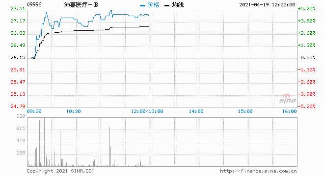 沛嘉醫(yī)療-B(9996.HK)漲近5%,報(bào)27.4港元,總市值183億港元。