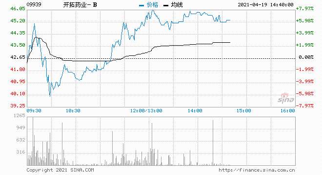 開拓藥業(yè)-B漲超7% 現(xiàn)報45.9港元