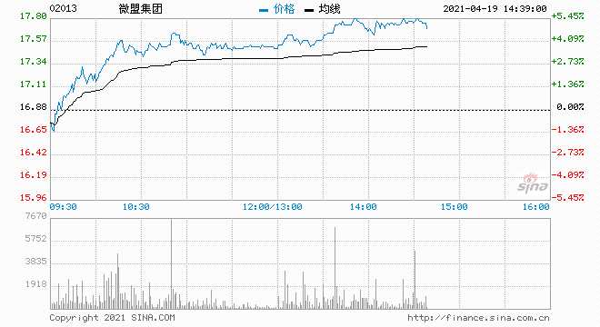 微盟集團(tuán)(02013)午后漲超5%,截至發(fā)稿,漲4.62%,報(bào)17.66港元,成交額2.91億港元。