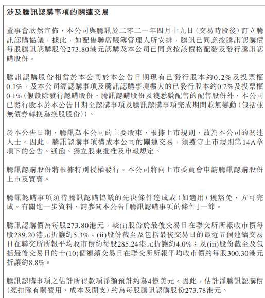 摘要: 4月20日消息,美團(tuán)在港交所公告,董事會欣然宣布,本公司、騰訊及配售聯(lián)席賬簿管理人于二零二一年四月十九日訂立配售及認(rèn)購協(xié)議,據(jù)此,騰訊同意委聘配售聯(lián)席賬簿管理人,