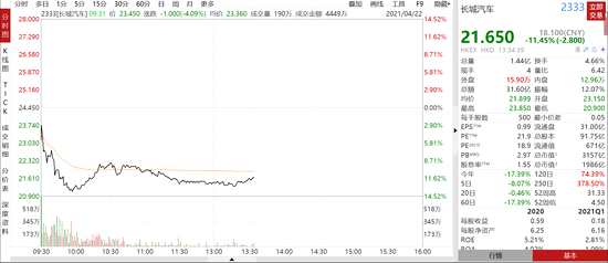 今日上午,長城汽車低開低走,股價一度暴跌近15%,截至發(fā)稿,長城汽車跌超11%,報價21.65港元,最低見20.9港,近100億港股市值遭蒸發(fā)。根據(jù)成交數(shù)據(jù),長城汽車今日放量成交1.46億股,涉資31.9億港元。