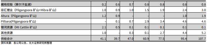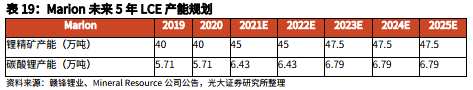 Pilbara未來5年LCE產(chǎn)能規(guī)劃如下: