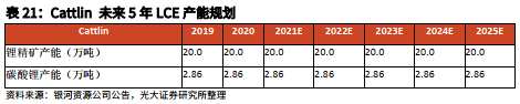 Cattlin未來5年LCE產(chǎn)能規(guī)劃如下: