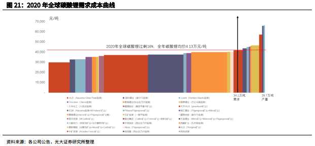 由于需求的快速釋放,2021年全球碳酸鋰供需將處于緊平衡狀態(tài),品質(zhì)優(yōu)良的產(chǎn)品仍具有稀缺性,行業(yè)尾部的產(chǎn)能無法通過降低價格來取代現(xiàn)有品質(zhì)優(yōu)良的供應(yīng)商。因而行業(yè)整體的盈利能力將得到有效支撐。