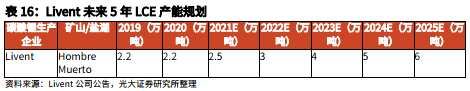 Livent未來5年LCE產(chǎn)能規(guī)劃如下: