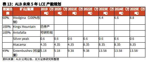 ALB未來5年折算LCE產(chǎn)能規(guī)劃如下: