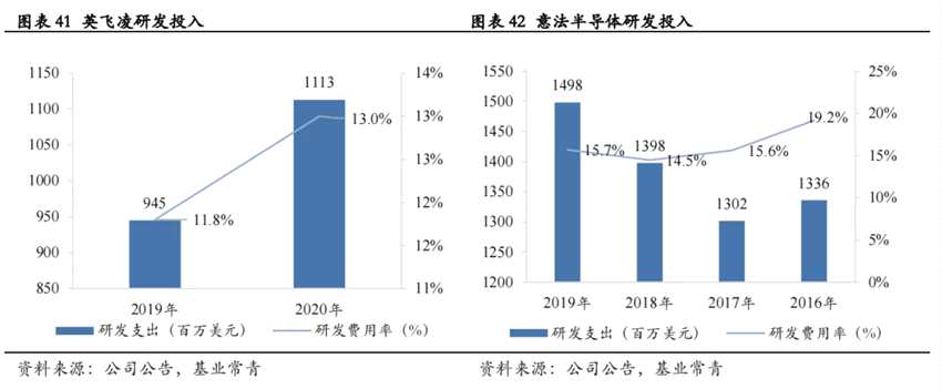 汽車半導(dǎo)體的高要求需要持續(xù)的資金投入,以實(shí)現(xiàn)技術(shù)的突破和創(chuàng)新,保持市場競爭力。汽車半導(dǎo)體產(chǎn)品在設(shè)計(jì)、制造、封測等各個(gè)環(huán)節(jié)均有較高的技術(shù)壁壘,近年來國際主要汽車半導(dǎo)體廠商均通過大量研發(fā)投入來提升技術(shù)水平,以保持市場競爭優(yōu)勢。英飛凌2020年研發(fā)投入高達(dá)11.13億美元,比2019年提高了18%;意法半導(dǎo)體2019年研發(fā)投入高達(dá)14.98億美元,研發(fā)費(fèi)用率達(dá)到15.7%。可以看出,持續(xù)不斷的研發(fā)投入是國內(nèi)廠商追趕國際巨頭的必由之路,也是國內(nèi)廠商發(fā)展過程中存在的一大難題。