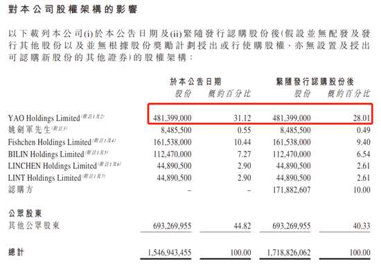 本次配售事項(xiàng)完成后,姚建軍持股縮水至28.01%,騰訊躍升至10%,成為公司最大機(jī)構(gòu)股東。
